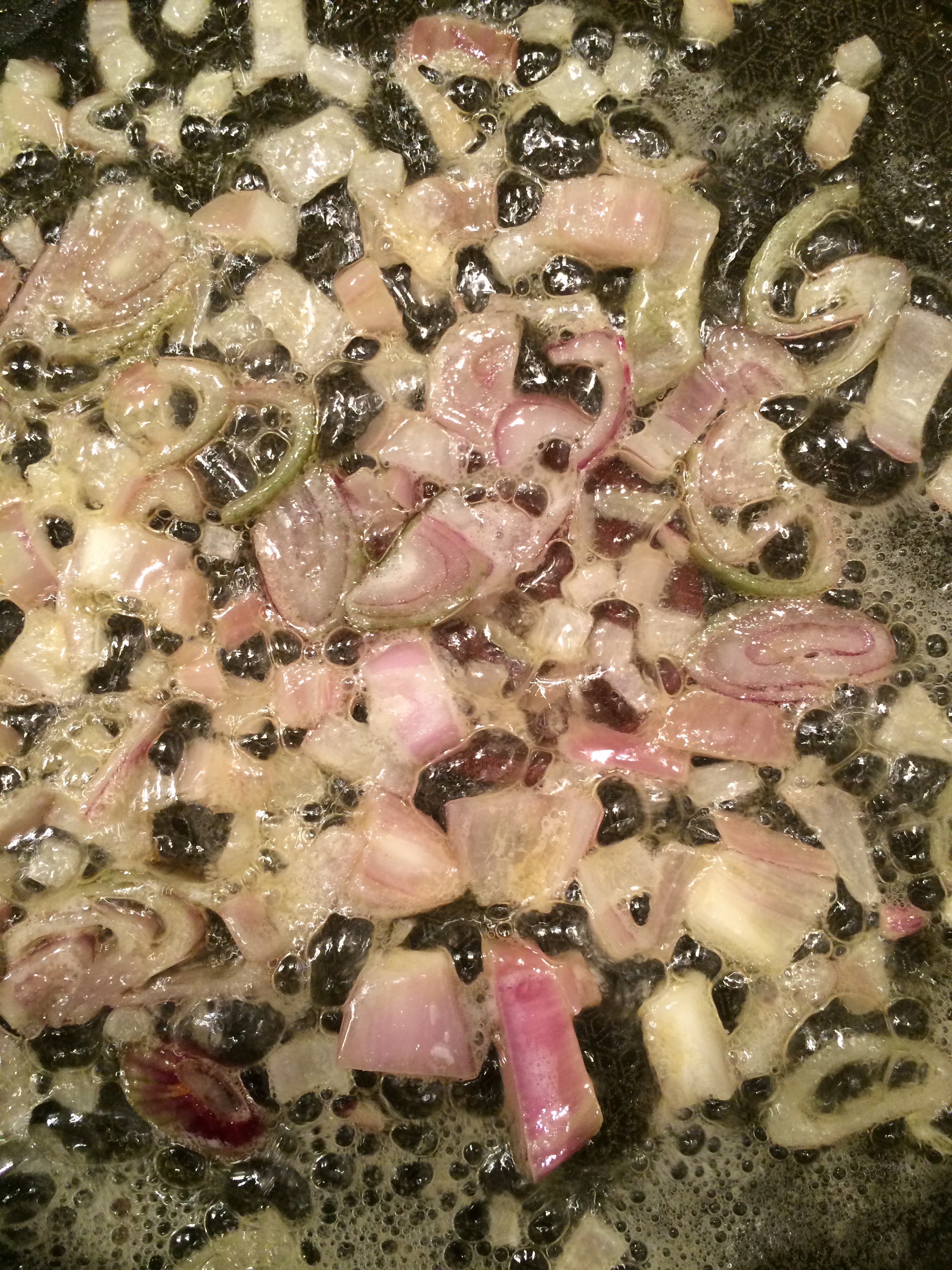 Hachez finement 1 ou 2 échalotes et faites revenir dans une poêle avec du beurre et un filet d’huile d’olive.