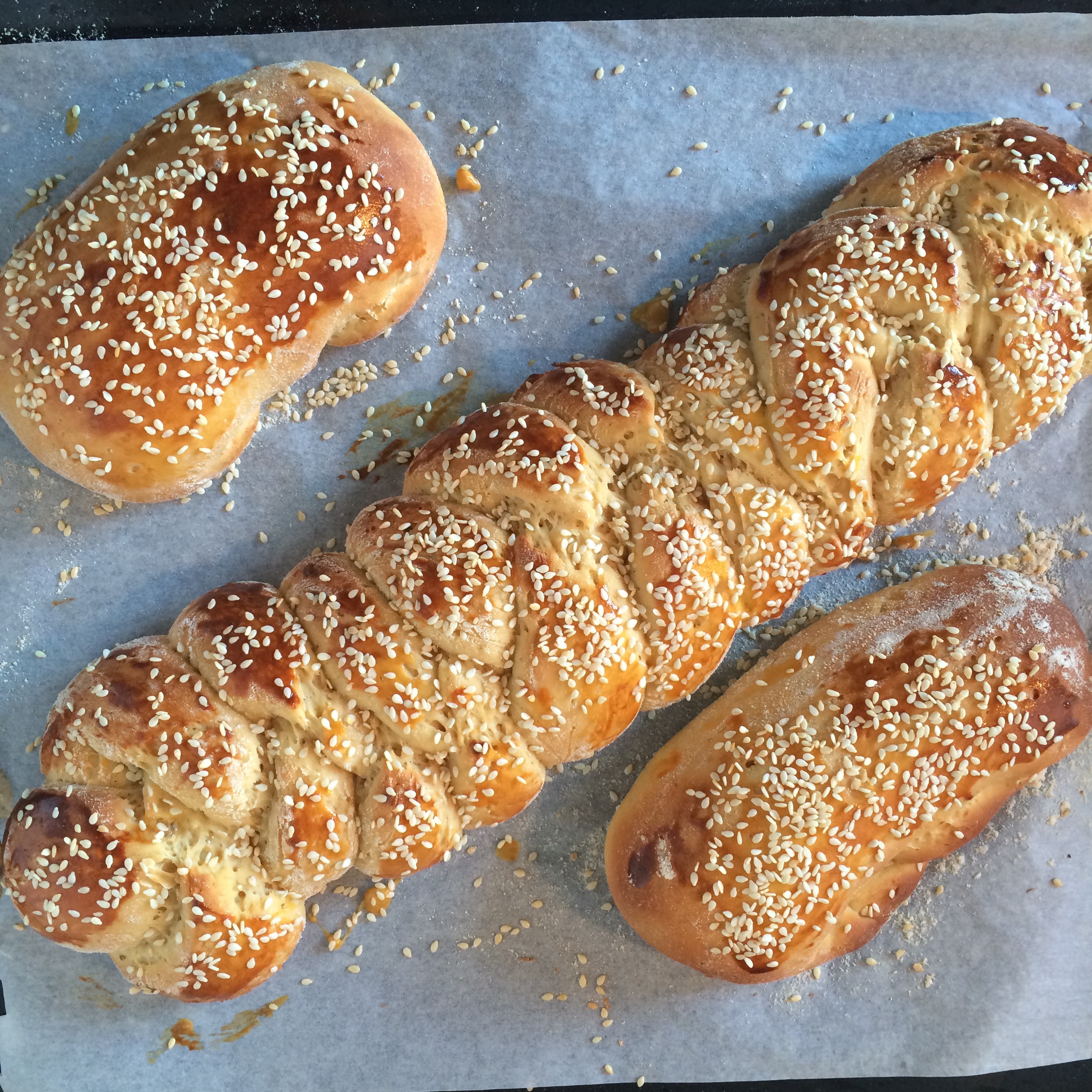 Le lendemain matin, badigeonnez de jaune d’œuf et saupoudrez de graines de sésame. Préchauffez votre four à 180°. Enfournez 20 à 25 minutes. Votre brioche de Pâques bien dorée est prête !