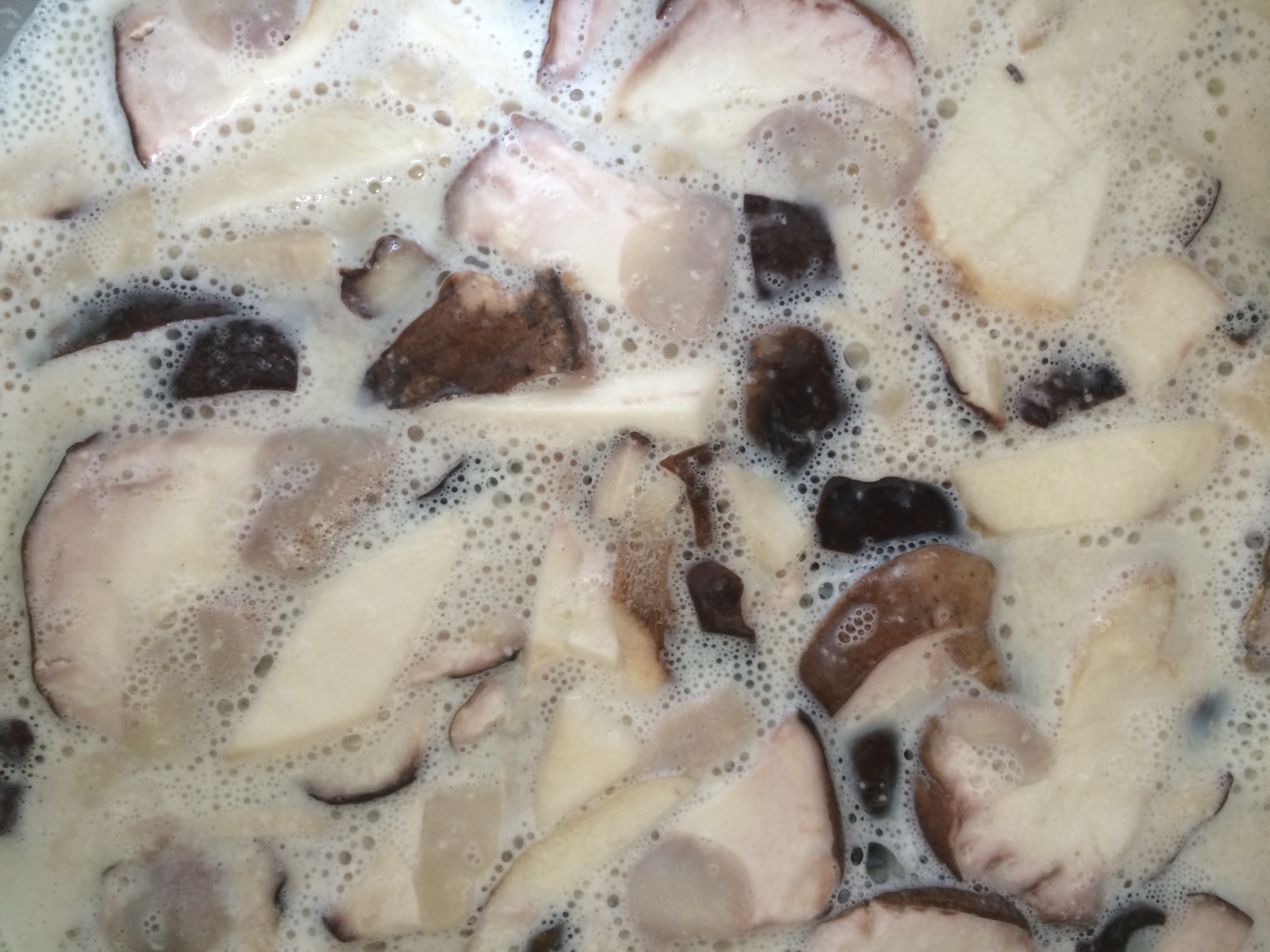 Dans une casserole, faites bouillir 500mL de lait. Quand le lait s’apprête à bouillir, versez les morceaux de cèpes et coupez le feu. Laissez infuser 30 minutes.
