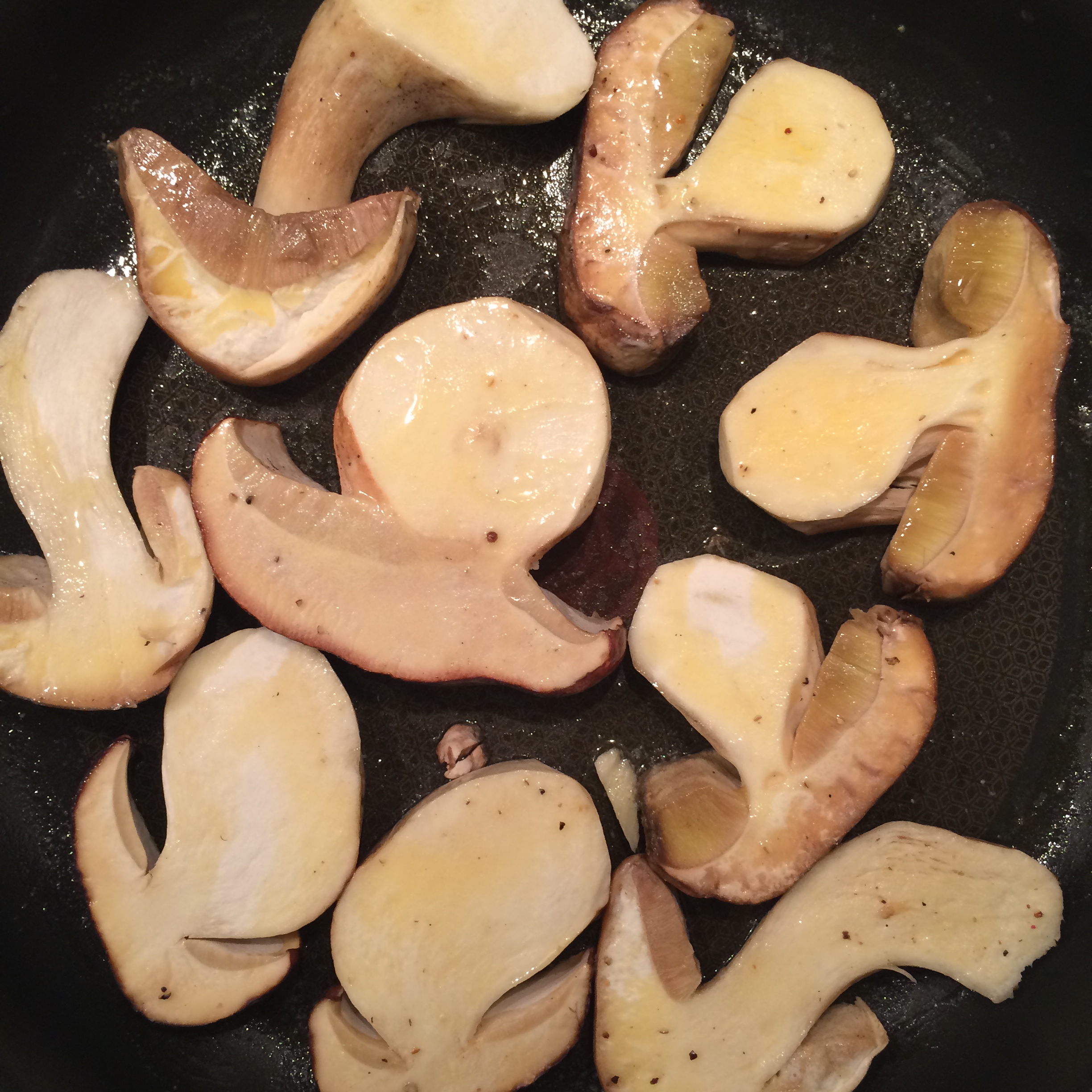 En option: faites dorer quelques tranches de cèpes à la poêle, avec un peu de sel et de poivre (tout simplement).